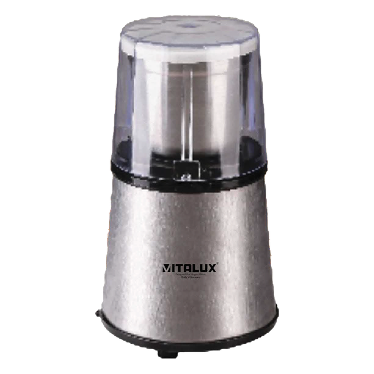 - خرید آسیاب قهوه حرفهای ایتالوکس مدل 800 با تیغه چهارپره، بدنه استیل، کاسه شفاف و توان ۲۰۰ وات – مناسب برای آسیاب قهوه اسپرسو، انواع ادویهجات، قند و مواد خشک دیگر.